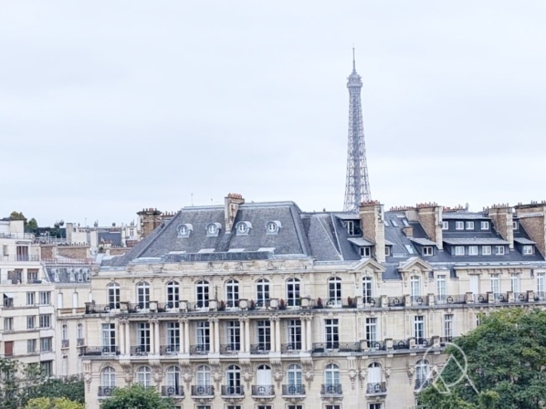 Baigné de lumière, il bénéficie de vues spectaculaires et dégagées sur les monuments emblématiques de Paris, avec la Tour Eiffel et l’Arc de Triomphe en majesté. De généreuses terrasses, rares sur ce secteur, prolongent les espaces de réception et invitent à profiter pleinement d’un art de vivre unique, entre ciel et ville.